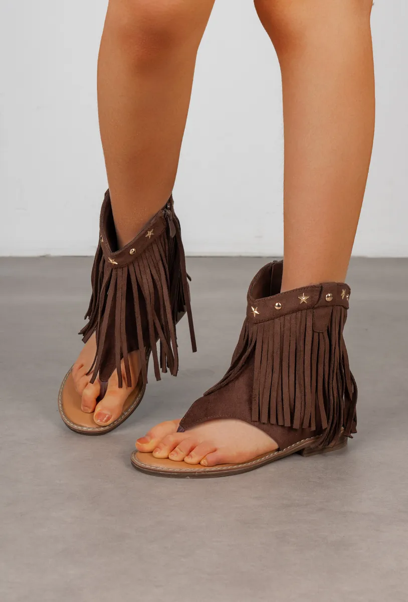 Sandales plates franges cheville