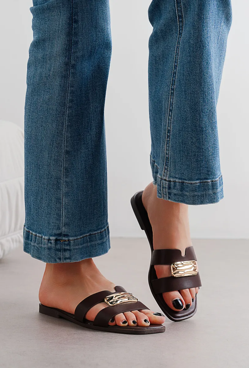 Claquettes deux brides ornement metal femme