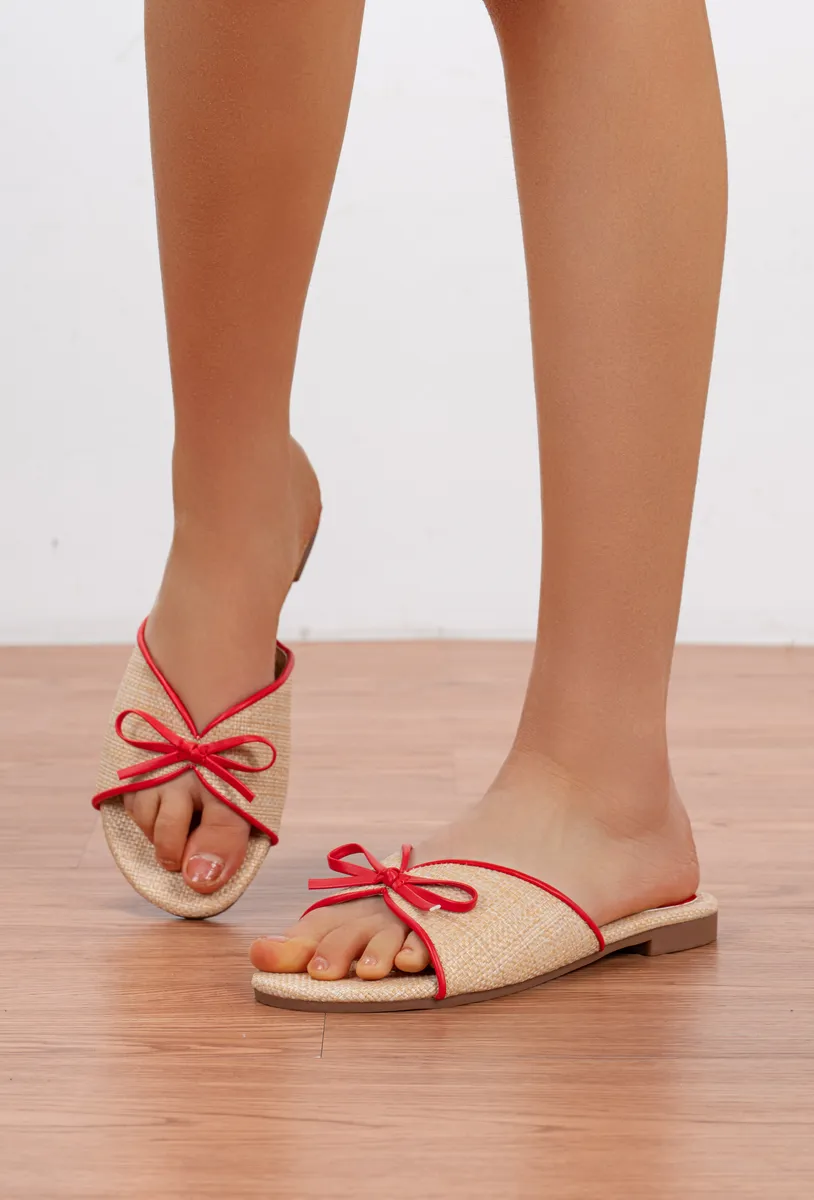Mules plate raphia noeud décoratif femme
