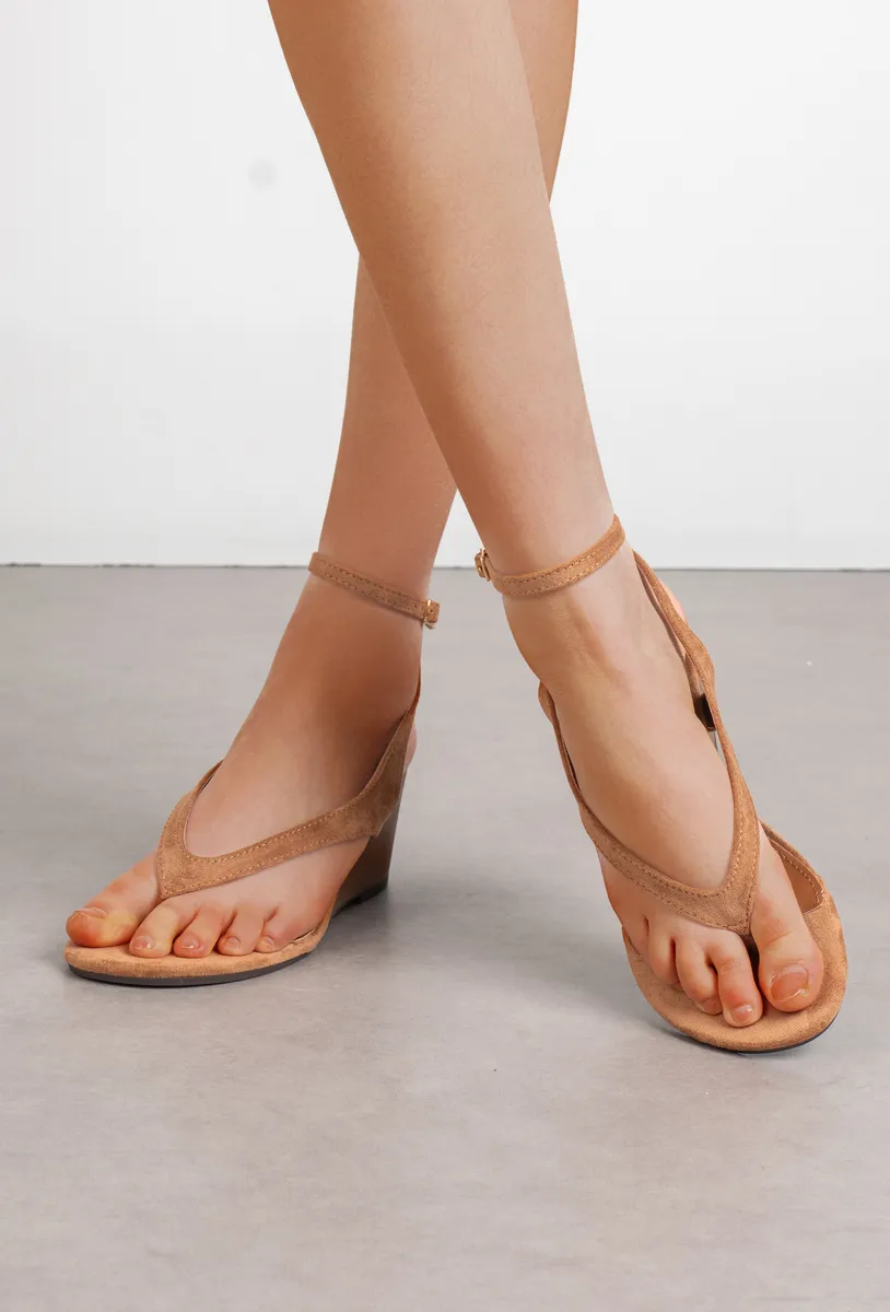 Sandales compensees entre-doigts bride cheville