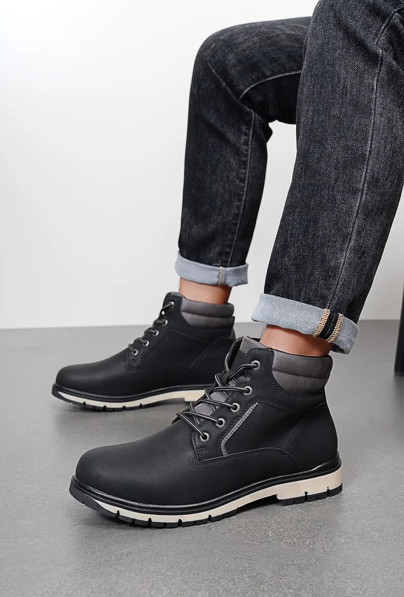 Bottines montantes lacets col matelassé
